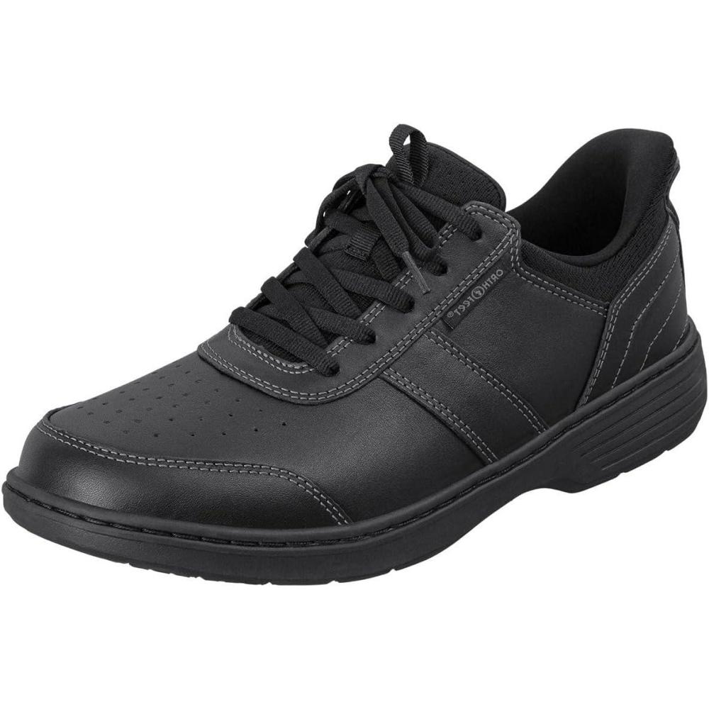 Orthofeet Men’s Orthopedic Pierre Hands-Free Leather Dress Sneaker(Black)