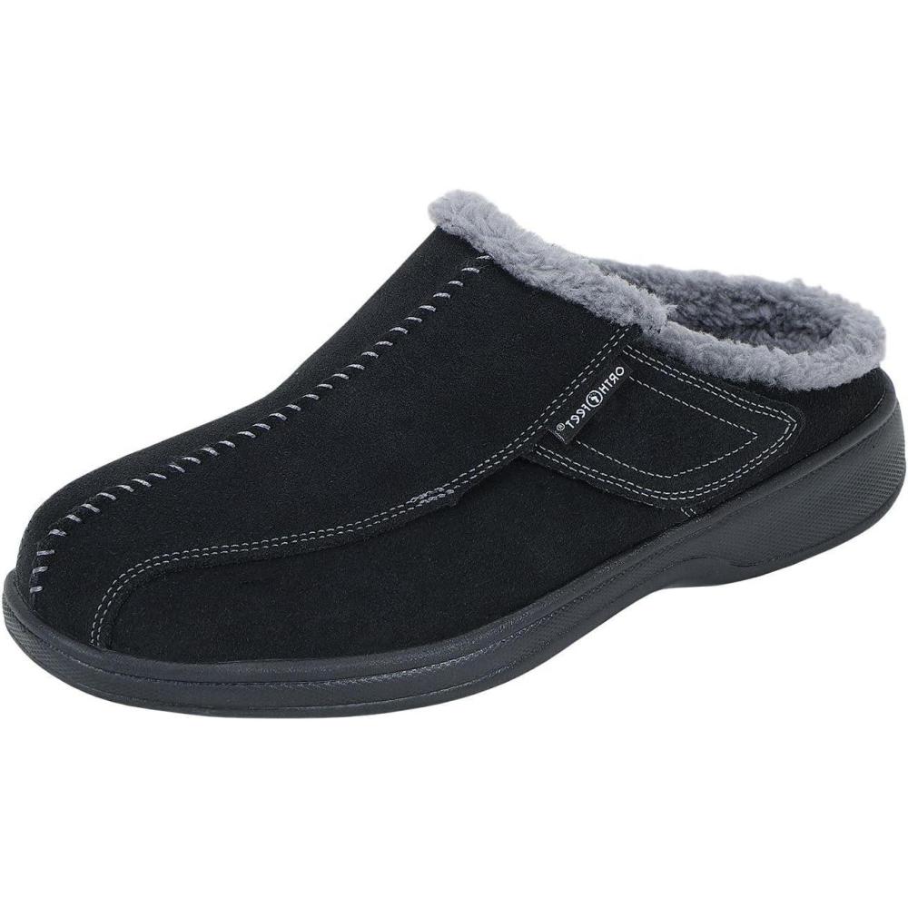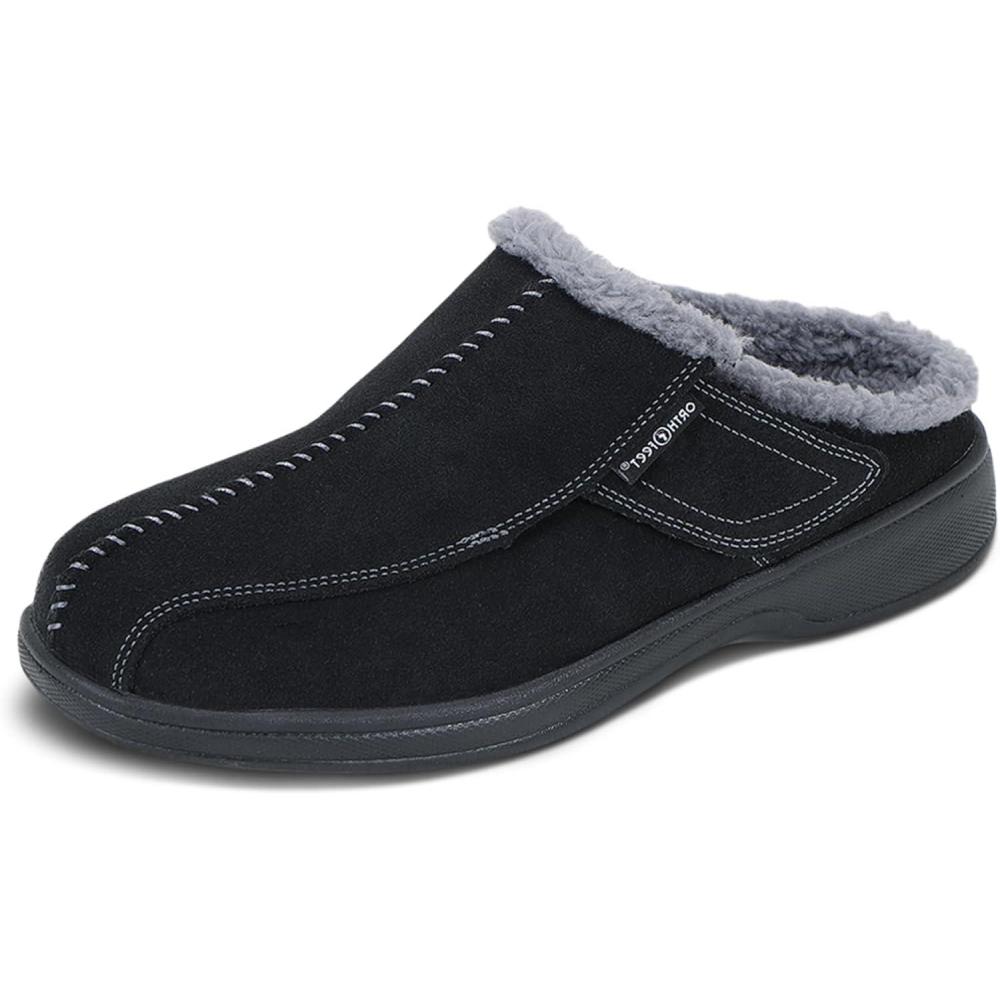 Orthofeet Men’s Orthopedic Asheville Adjustable Faux Fur Lined Slipper(Black)