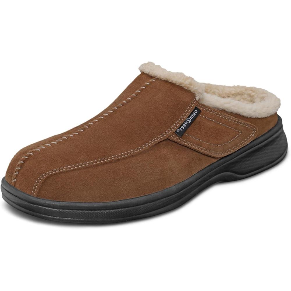 Orthofeet Men’s Orthopedic Asheville Adjustable Faux Fur Lined Slipper(Brown)