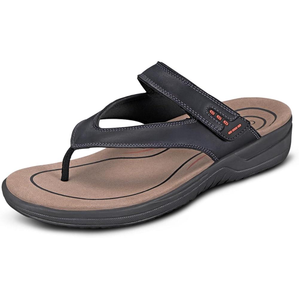 Orthofeet Men’s Orthopedic Eldorado Adjustable Leather Thong Sandal(Black)