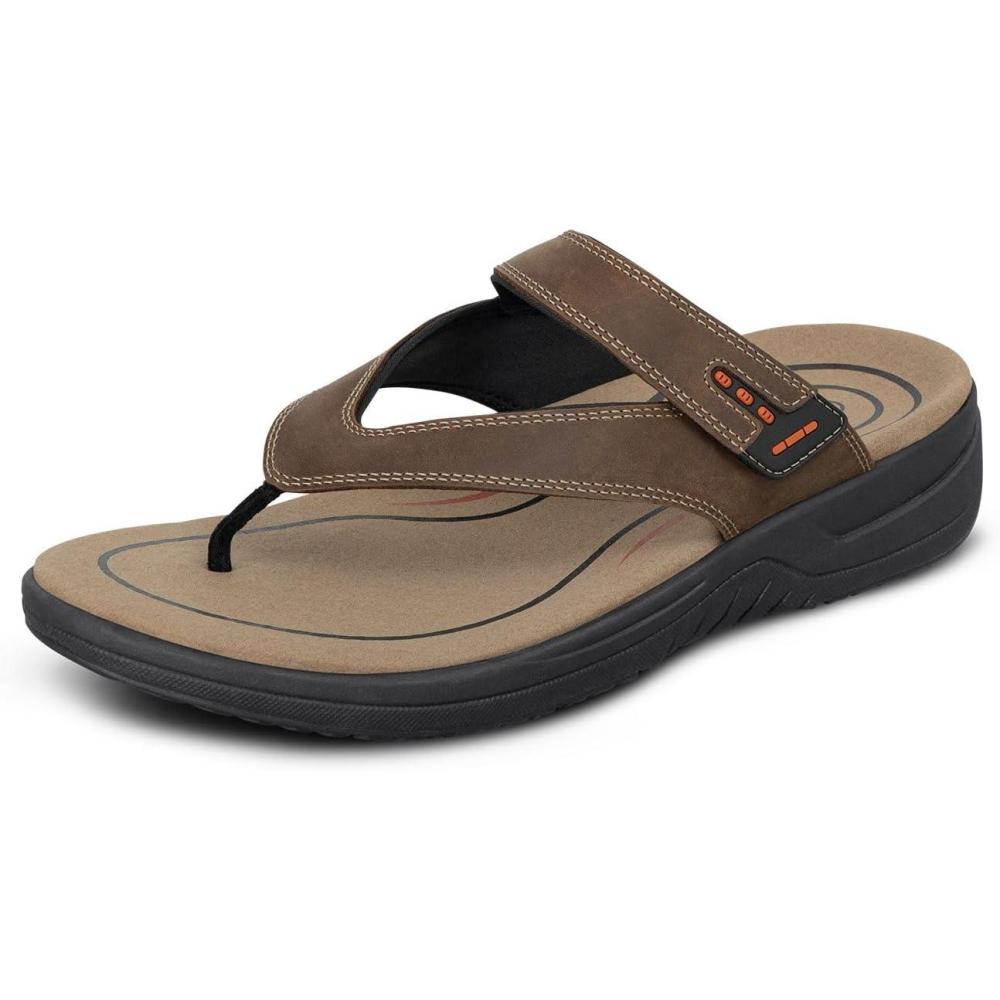 Orthofeet Men’s Orthopedic Eldorado Adjustable Leather Thong Sandal(Brown)