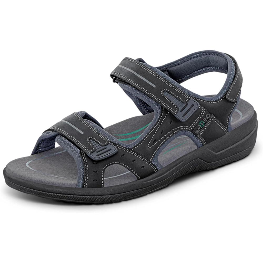 Orthofeet Men’s Orthopedic Gemini Adjustable Leather Sandal(Black)