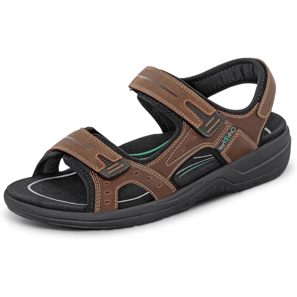 Orthofeet Men’s Orthopedic Gemini Adjustable Leather Sandal(Brown)