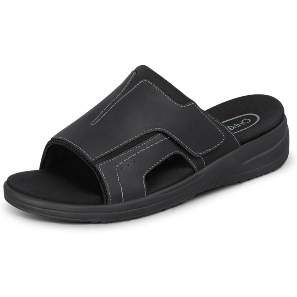 Orthofeet Men’s Orthopedic Leather Sarasota Slide Sandals(Black)