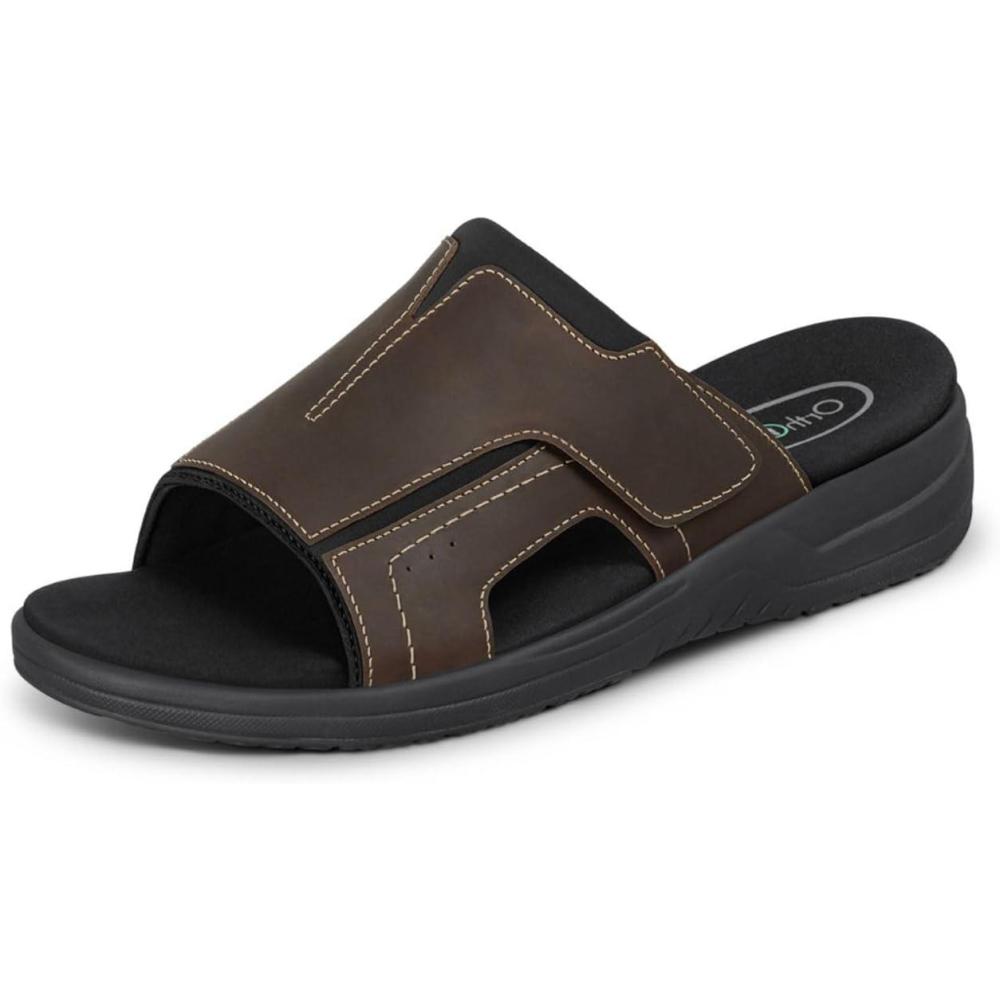 Orthofeet Men’s Orthopedic Leather Sarasota Slide Sandals(Brown)