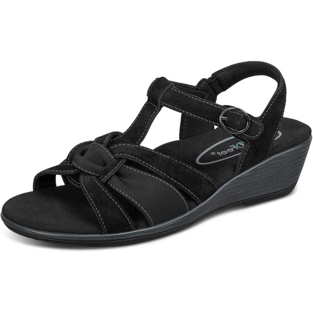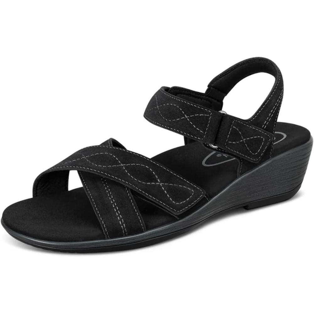 Orthofeet Women’s Orthopedic Holly Adjustable Leather Wedge Sandal(Black)