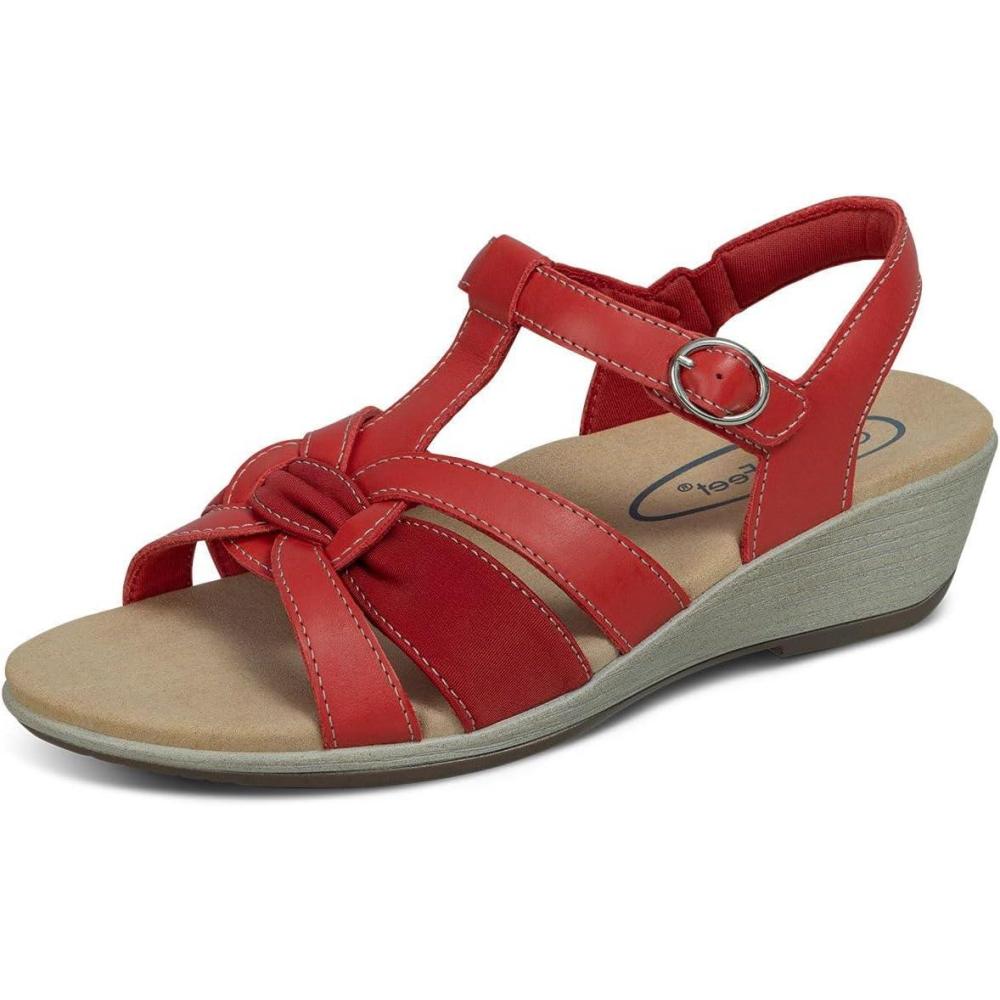 Orthofeet Women’s Orthopedic Hope Adjustable Gladiator Wedge Sandal(Red)