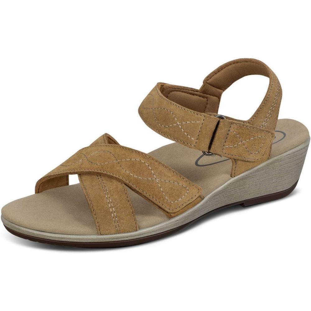 Orthofeet Women’s Orthopedic Holly Adjustable Leather Wedge Sandal(Camel)